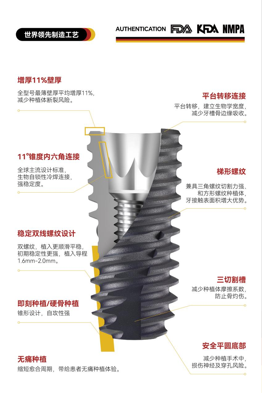 随着医疗技术的进步和患者对生活质量要求的提高,种植治疗正朝着即刻种植、即刻负重和美学修复等方向发展。这对种植体的性能提出了更高要求:必须具备良好的初期稳定性、合理的应力分布、一定的自攻能力,以及维持软硬组织稳定的能力。